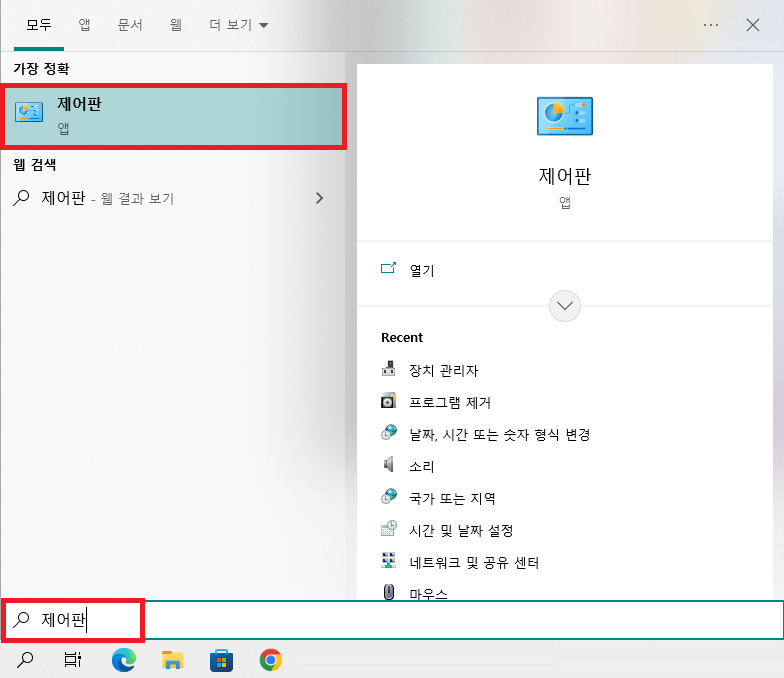 ▲ [윈도우키 + Q] 단축키를 사용하여 윈도우 검색창을 열어주신 후 [제어판]을 검색 후 클릭합니다.