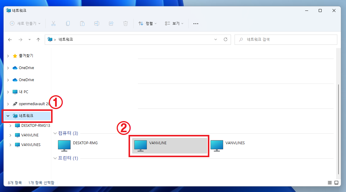 ▲ 이제 공유 폴더에 접근할 PC에서 [윈도우키 + E] 단축키를 사용하여 파일 탐색기를 열어주신 후 [네트워크]창으로 이동하면 자작 나스로 설정한 컴퓨터가 나타납니다.