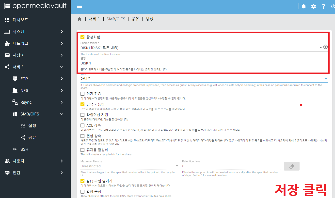 이번에는 openmediavault 공유 폴더 설정 방법에 대해 알려드리겠습니다.
