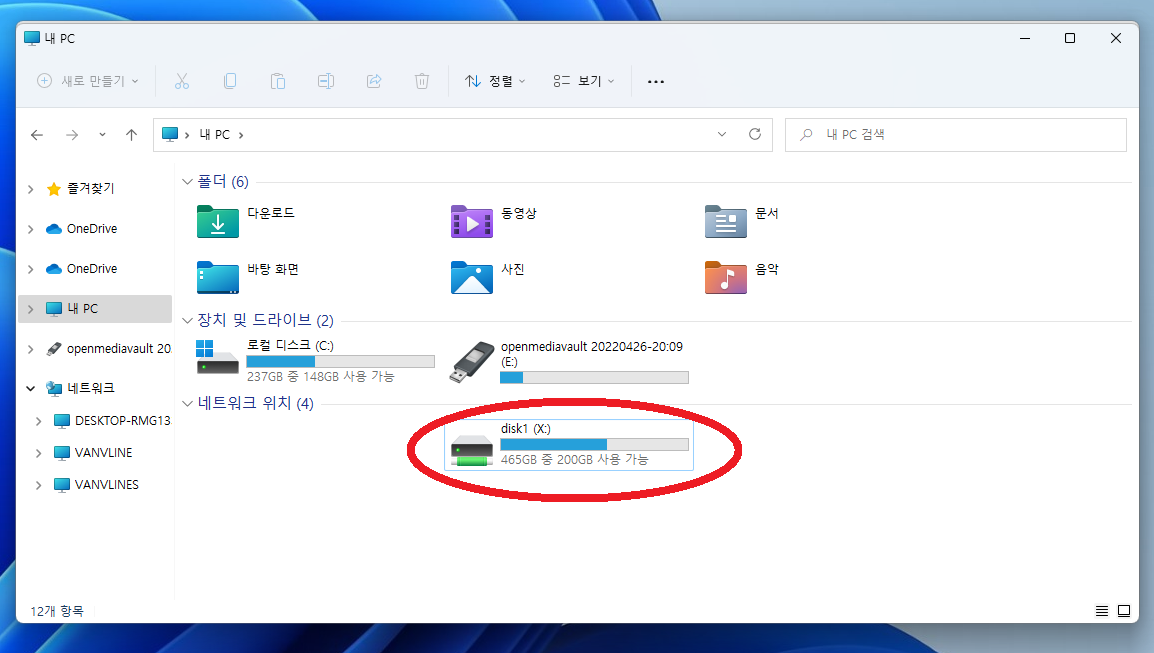 ▲ 그럼 공유 폴더로 설정한 디스크가 나타납니다.