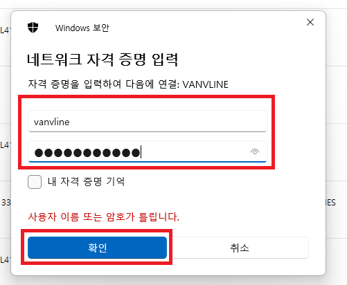 ▲ 그럼 위와 같이 네트워크 자격 증명창이 나타납니다.