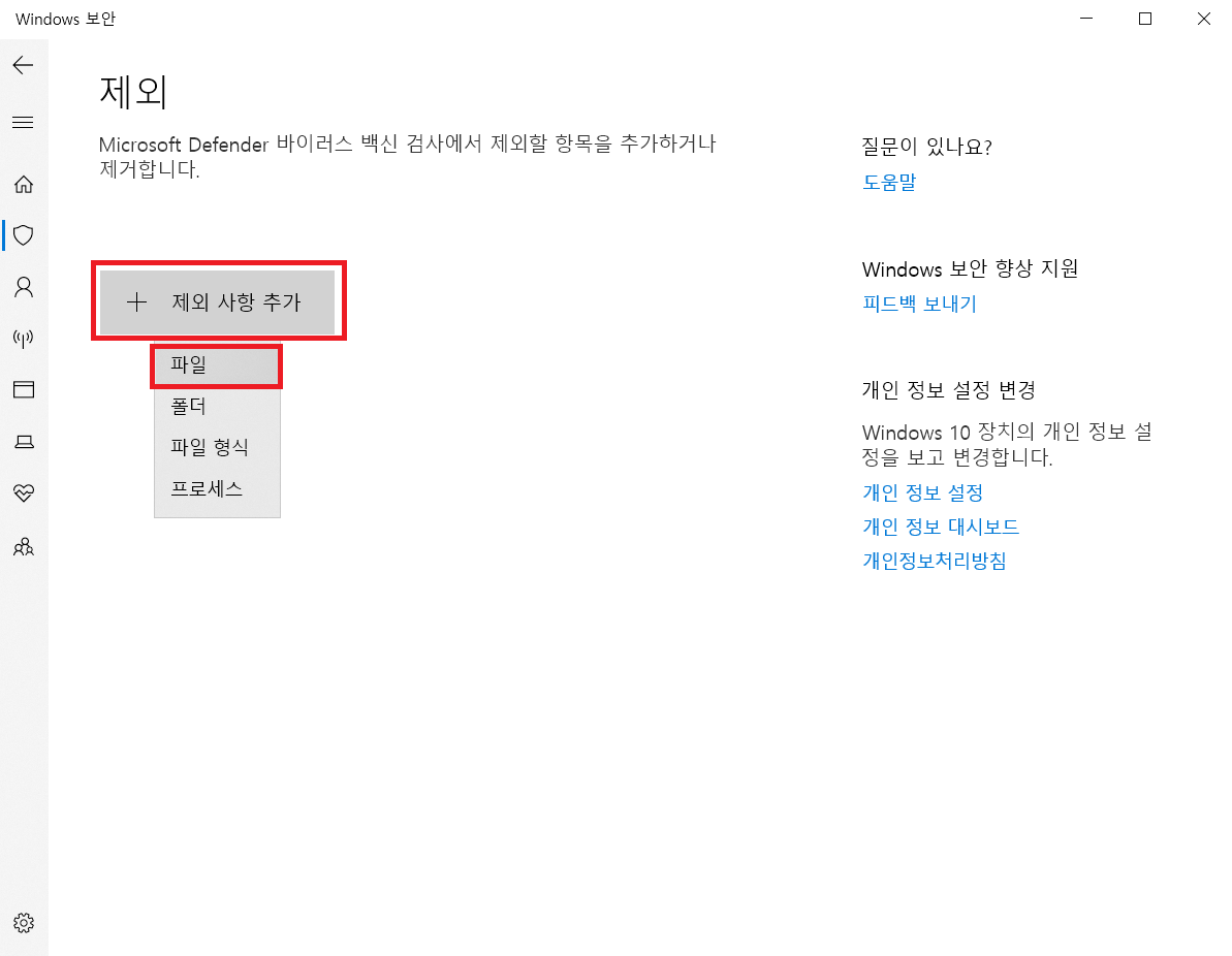 ▲ [제외 사항 추가 - 파일]을 클릭합니다.