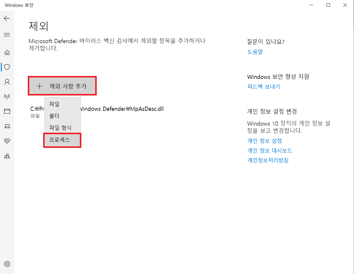 메모리 점유율을 줄이기 위해서는 Antimalware Service Executable 서비스를 Windows Defender 바이러스 검사에서 제외 시켜주시면 되는데요.